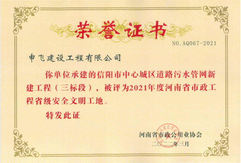 - [04-12]申飛建工再獲“省先進施工企業”、 “市政金杯獎”等多項榮譽